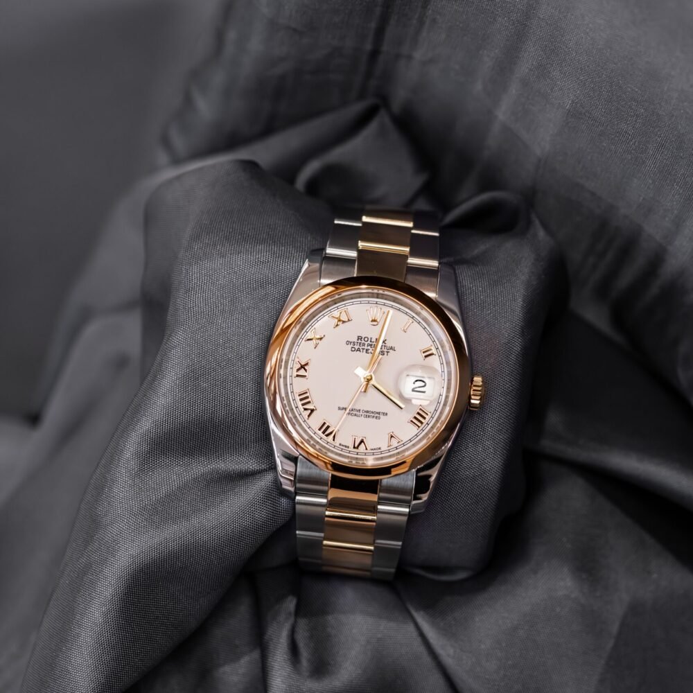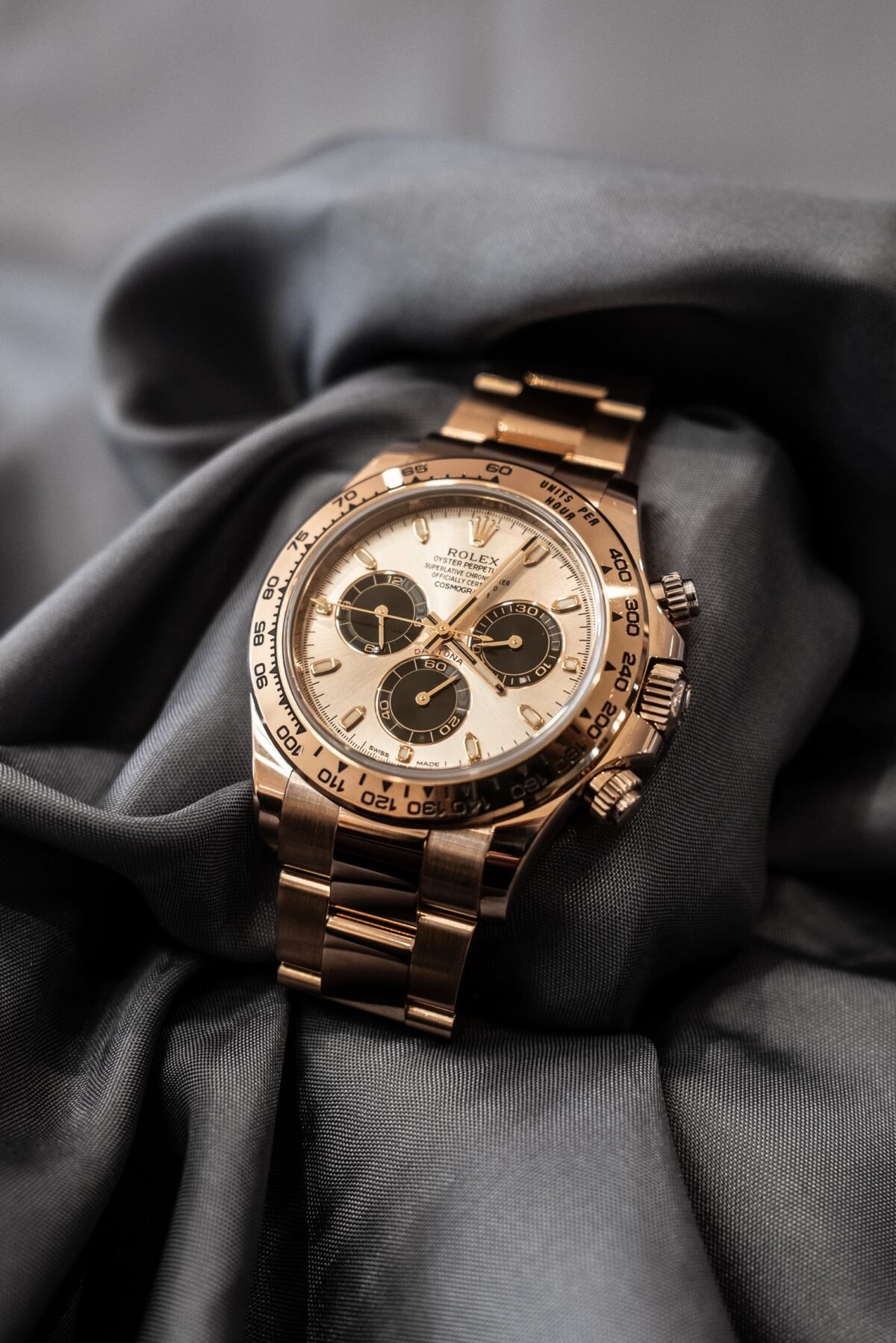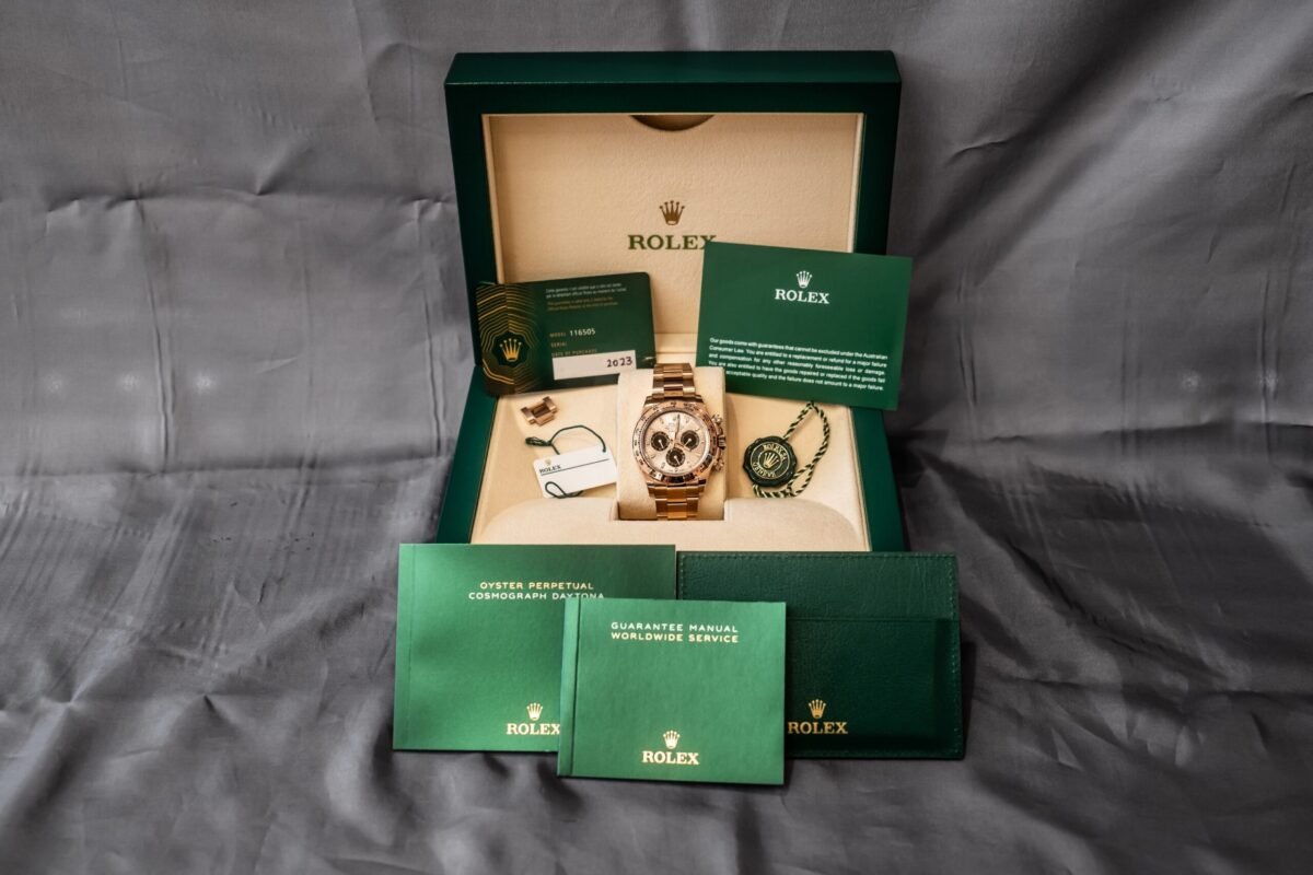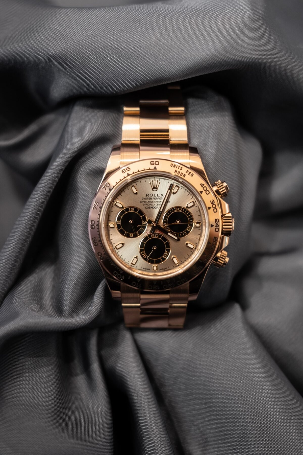 This 2023 Rolex Cosmograph Daytona 116505 is a unique combination of performance, sophistication and luxury. The watch features an 18k Rose Gold Bezel, Case and Bracelet, with a stunning Sundust Dial. The watch is an automatic, utilising the Rolex 4130 Calibre.