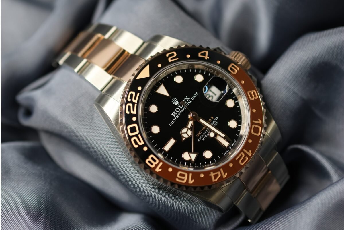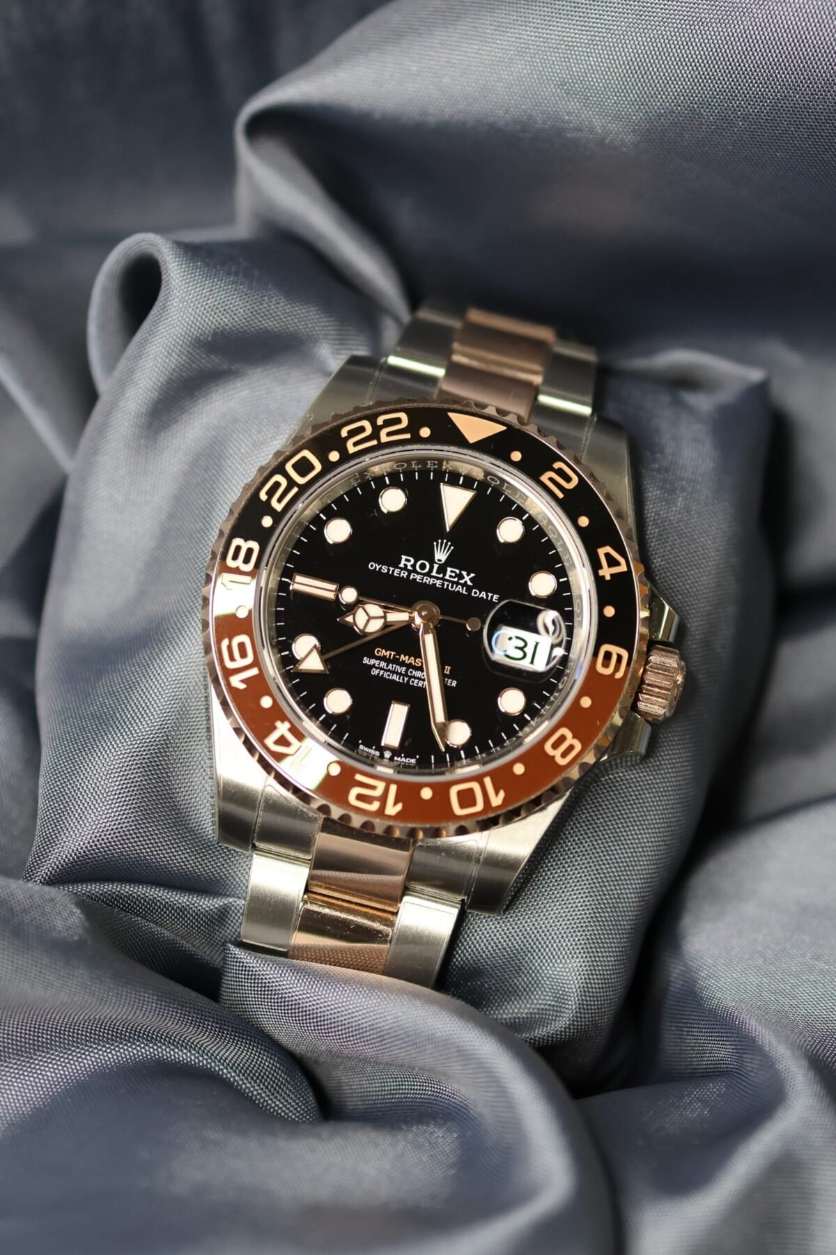 The Rolex GMT-Master II “Rootbeer” is an exceptional timepiece, blending timeless style with practical functionality. Featuring the iconic black and brown “Rootbeer” bezel in 18k rose gold, this watch boasts a 40mm steel case and a striking bi-metal bracelet made from 18k rose gold and steel. Powered by the reliable Rolex Calibre 3285 movement, it offers precision and durability, while the sophisticated black dial completes the bold yet refined look. If you’re after a luxury sports watch that stands out, this is the one.