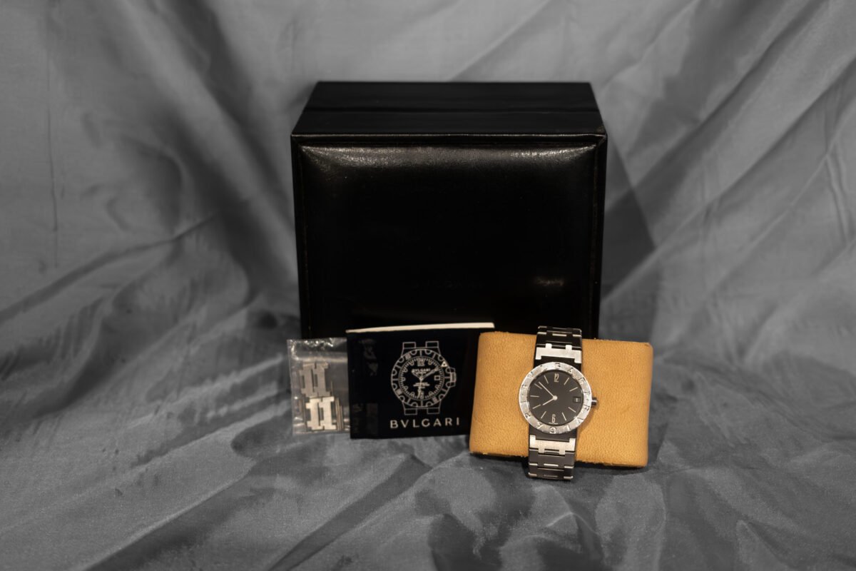 Bvlgari lady’s watch on offer here at great value. Check our other listing for the smaller square shaped model we are offering but here we have the 30mm BB30SSD watch. Bvlgari being such a lovely brand, their designs are so distinct throughout their jewellery and watches.
