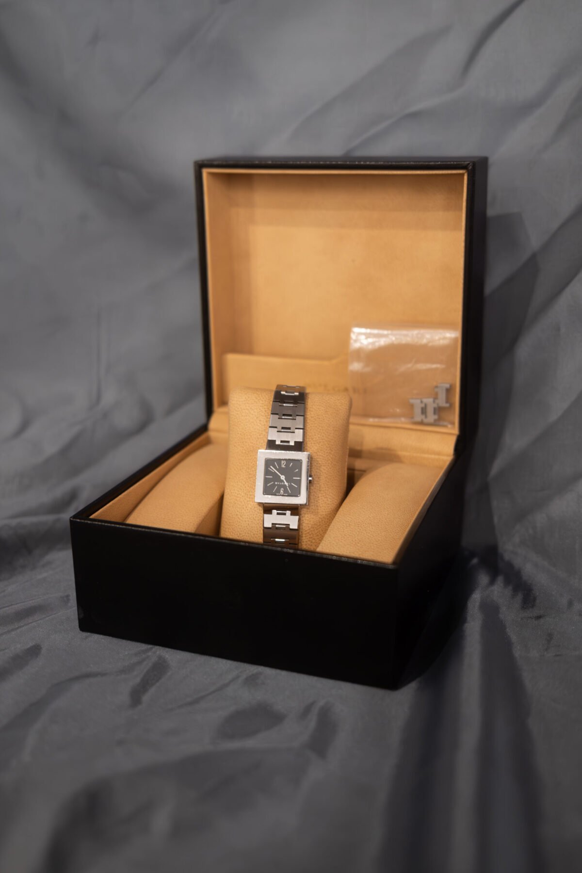 Stunning little lady’s Bvlgari watch for sale. This comes as watch and box, with spare links (no original paperwork). This would be a lovely gift in a cute square shape. Bvlgari being one of the most exclusive brands in the world, their timepieces are no exception to their craftsmanship.
