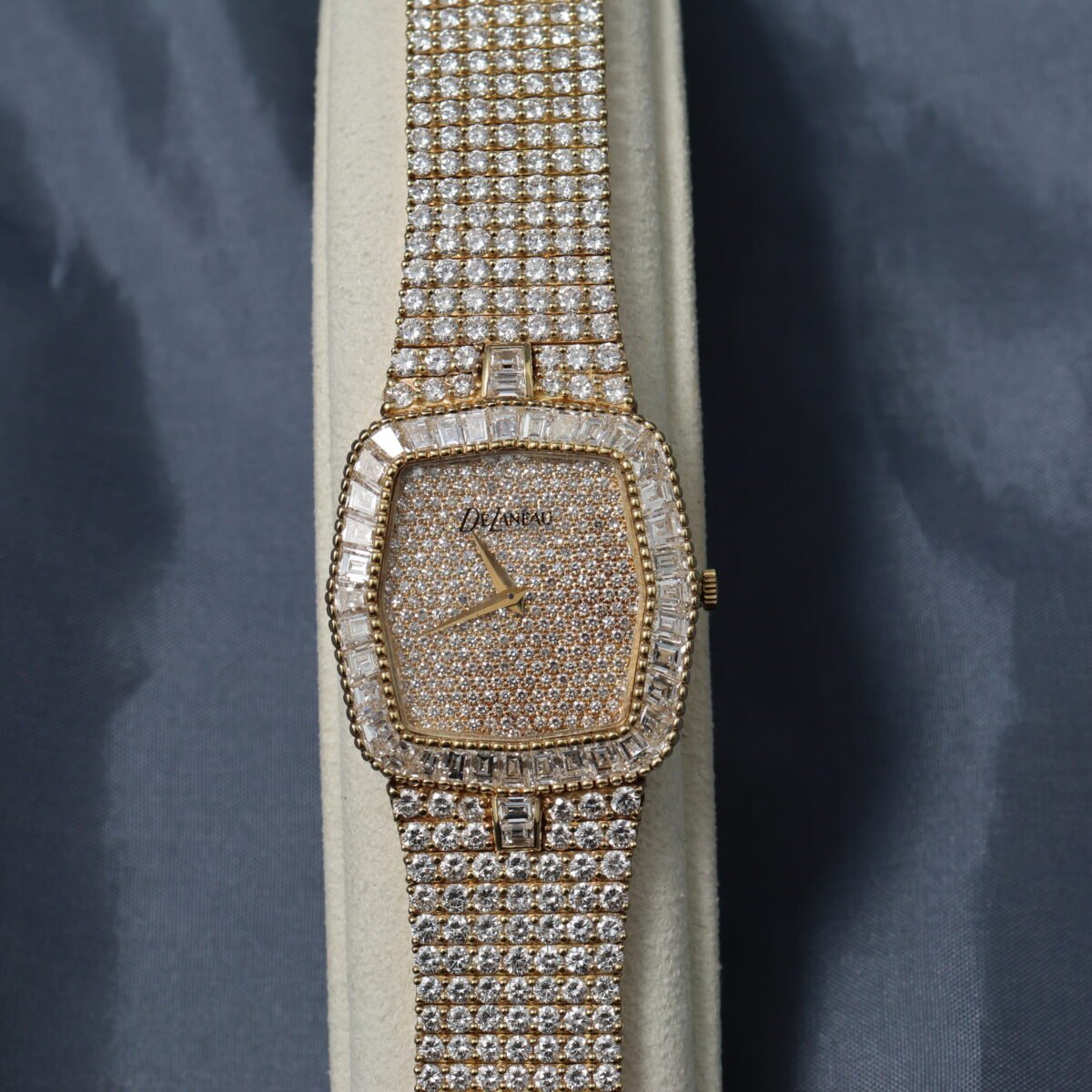 Delaneau Genève 18k Yellow Gold Diamond Pavé Ladies Watch – Cushion Case – High Jewellery Piece
