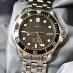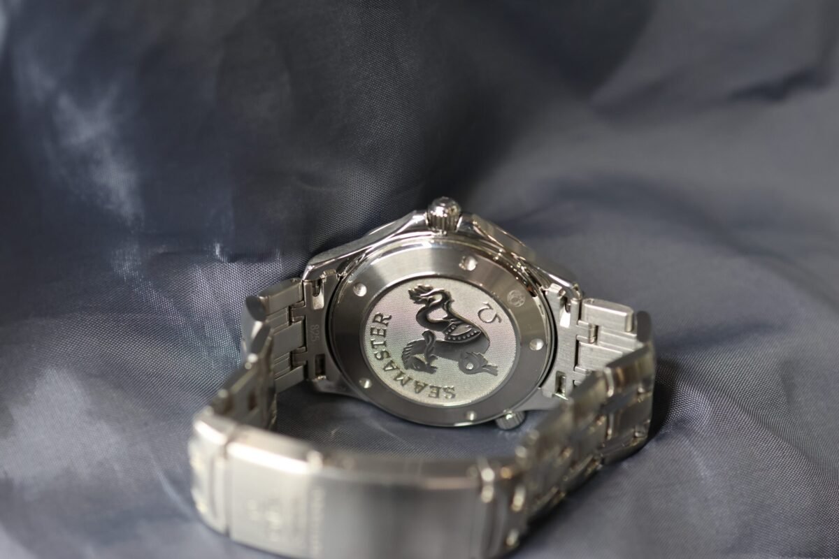 The Omega Seamaster is a classic and versatile timepiece, known for its durability and precision. This 41mm model features a striking black dial housed within a stainless steel case. Powered by a quartz movement, it offers accurate timekeeping and requires minimal maintenance. The watch comes with its original box and papers and is in good condition.